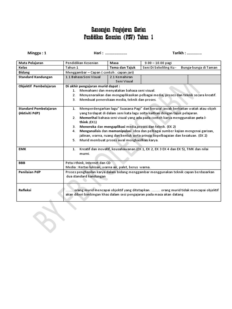 Koleksi rancangan pengajaran harian rph pendidikan kesenian untuk kegunaan guru bagi merancang pdp dengan baik. Rancangan Pengajaran Harian Pendidikan Kesenian PSV Tahun 2018 Minggu. Bersaiz kecil 16KB 18KB Print siap.